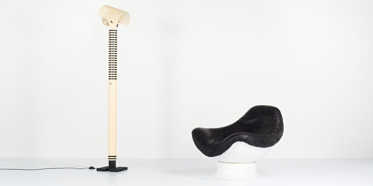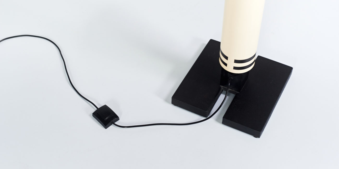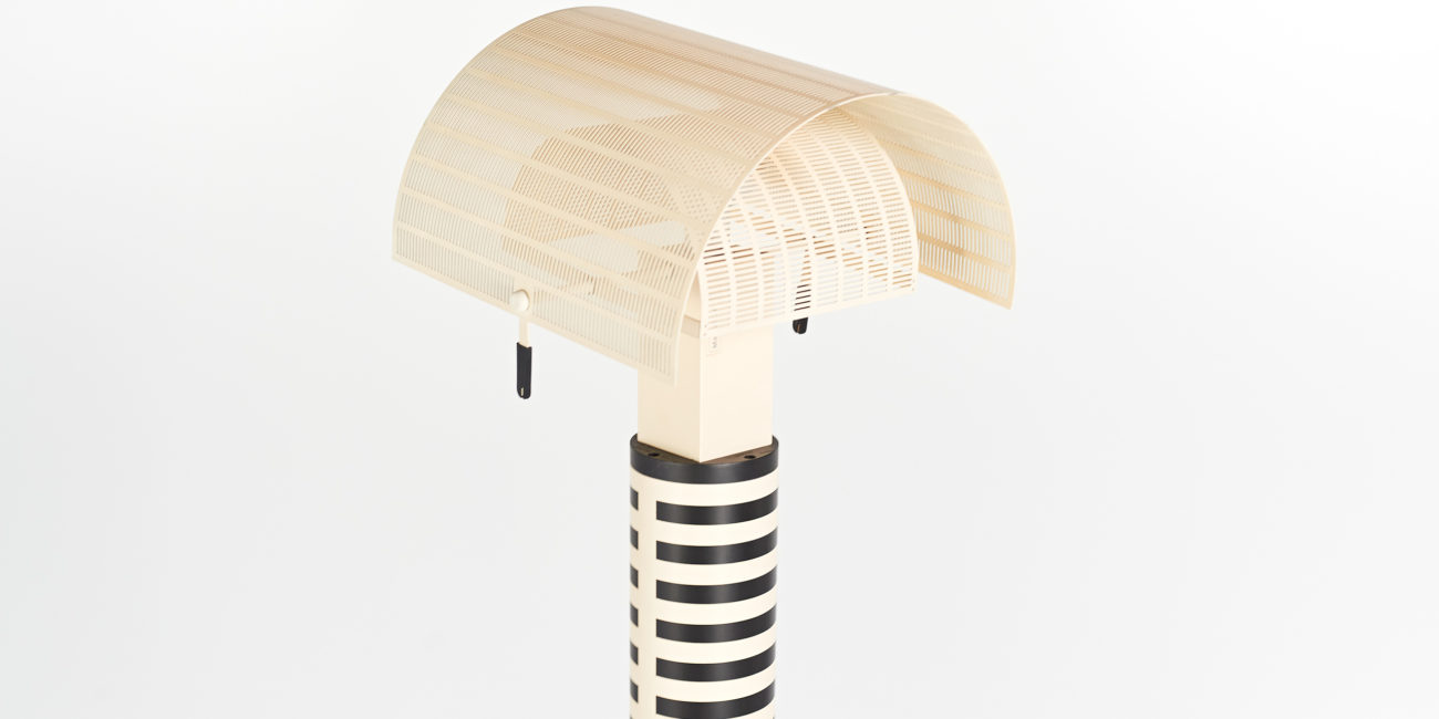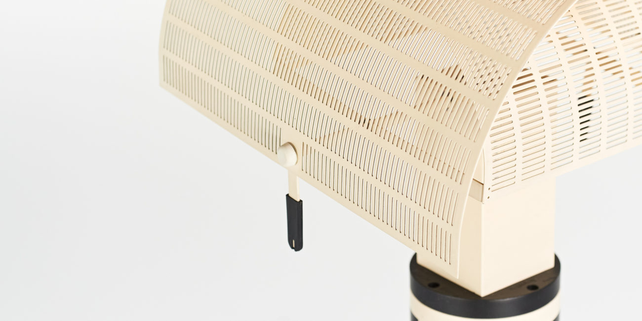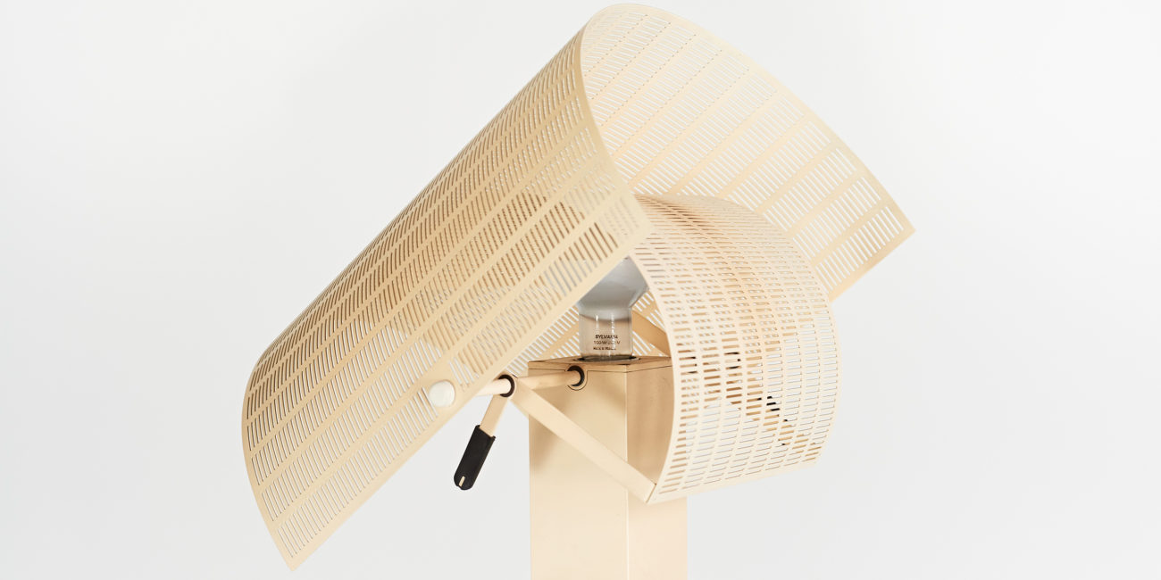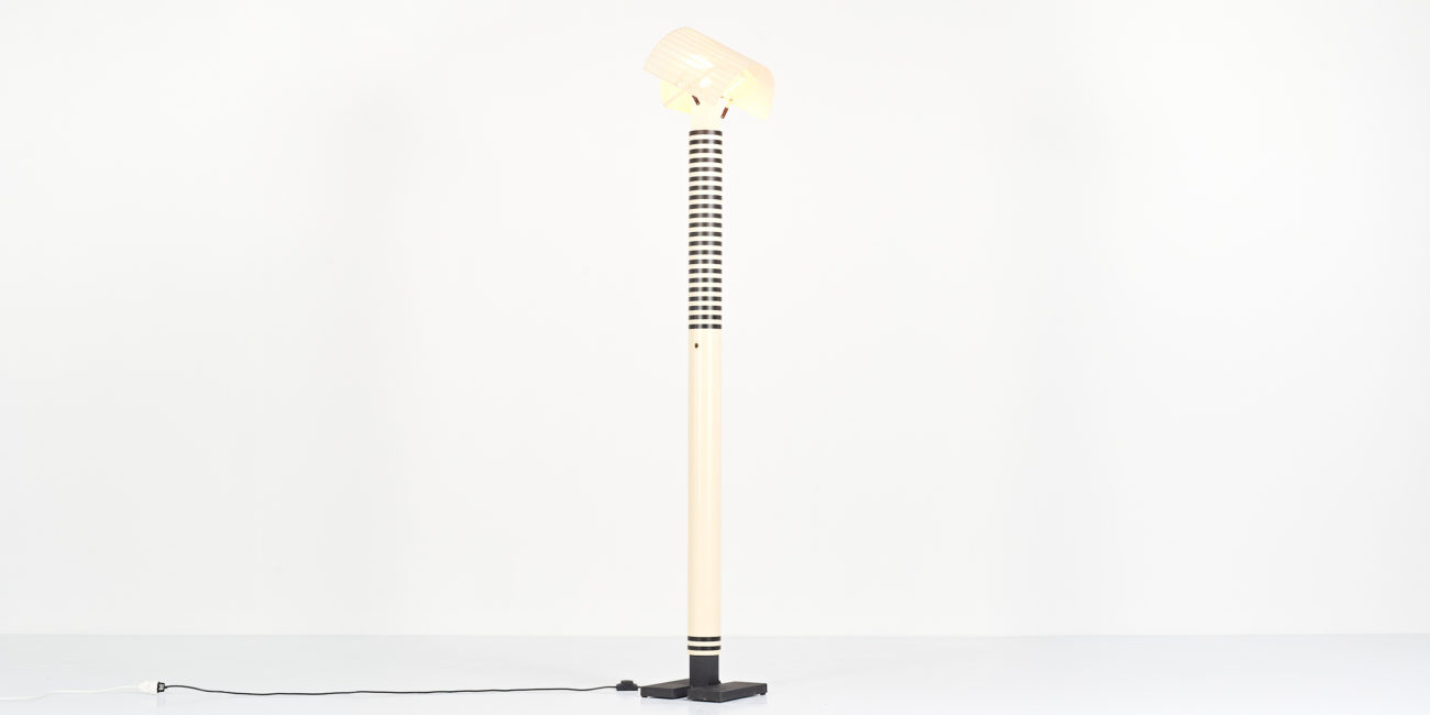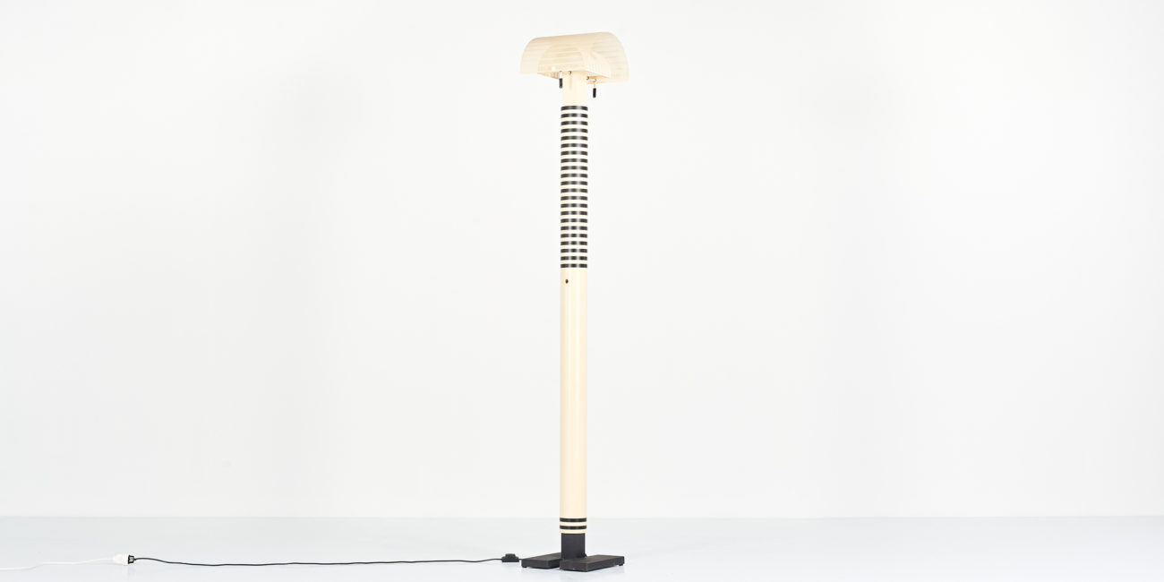 “Shogun Terra” lamp, iconic model by Swiss designer Mario Botta edited by Artemide. Shaft in lacquered aluminum, adjustable reflectors in lacquered perforated steel, base in cast steel. Small traces of use, very good general condition. Base dimensions: 30 x 30cm.