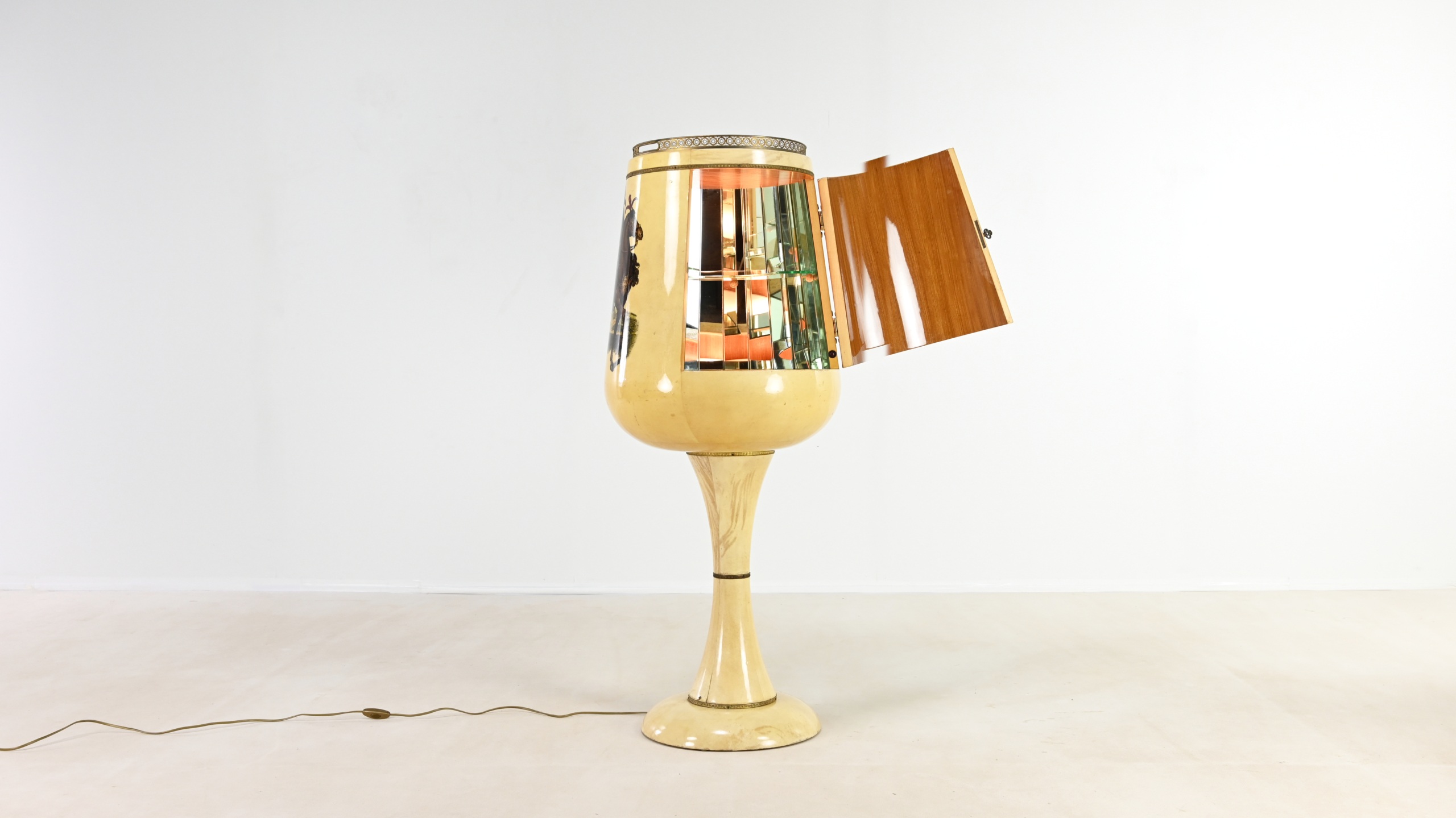 Aldo Tura, Meuble Bar "Calice" en Parchemin laqué. Italie, C.1950