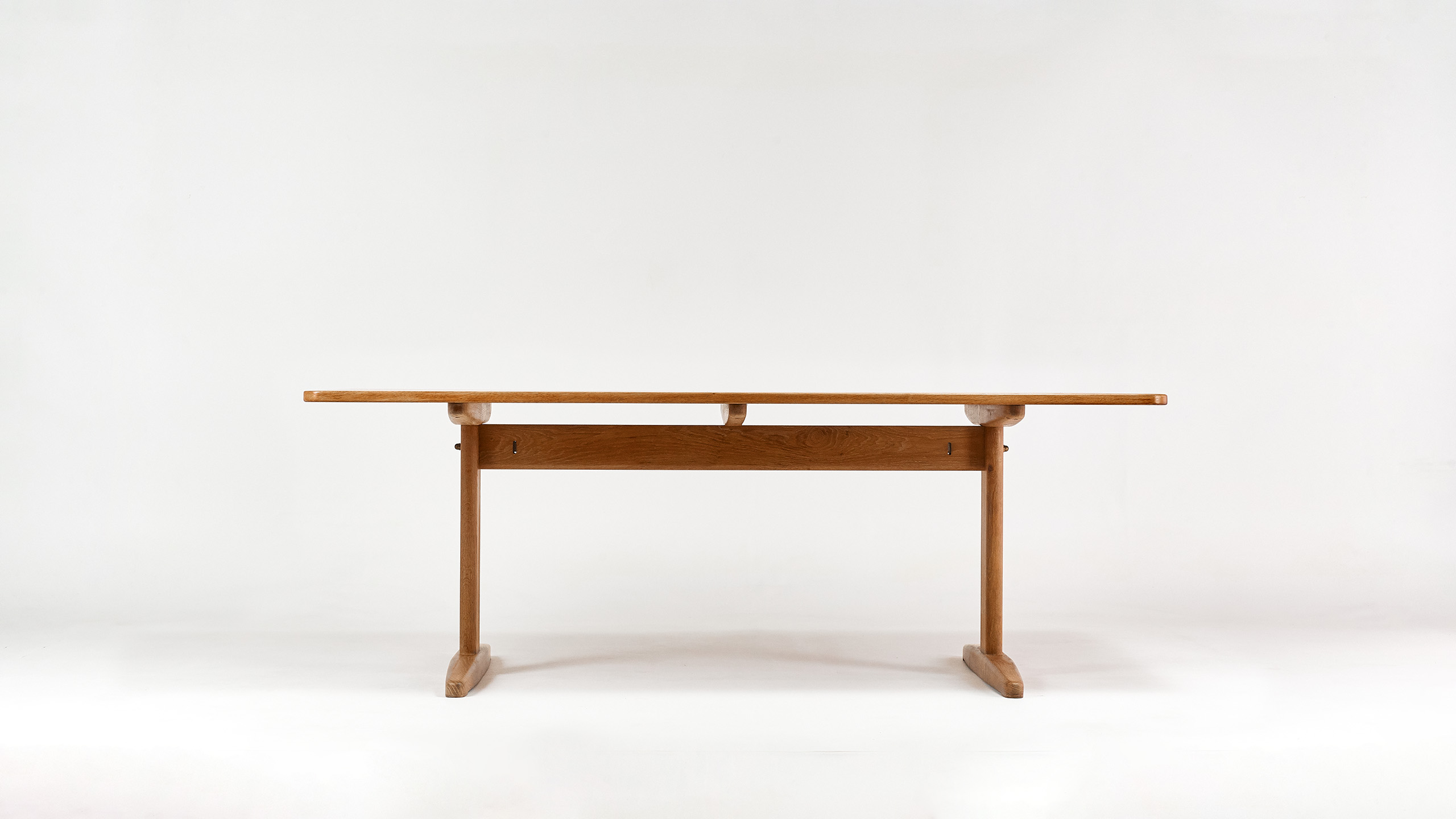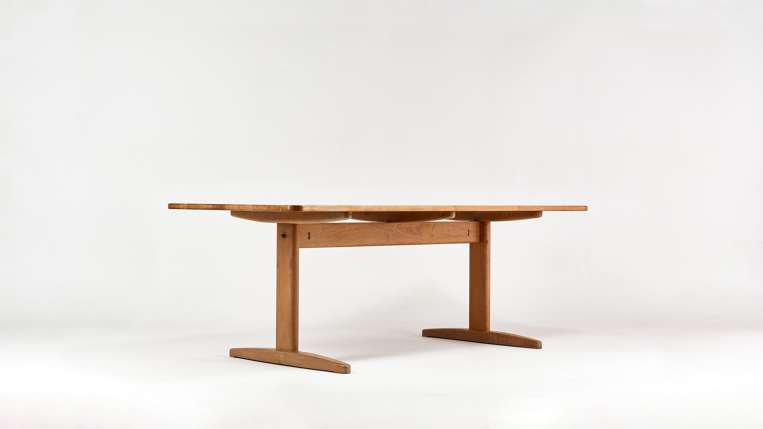 Rare dining room table in oak, by Danish designer Børge Mogensen for CM Madsen. Slight traces of use, very good overall condition. Massive oak. Denmark, C. 1960.